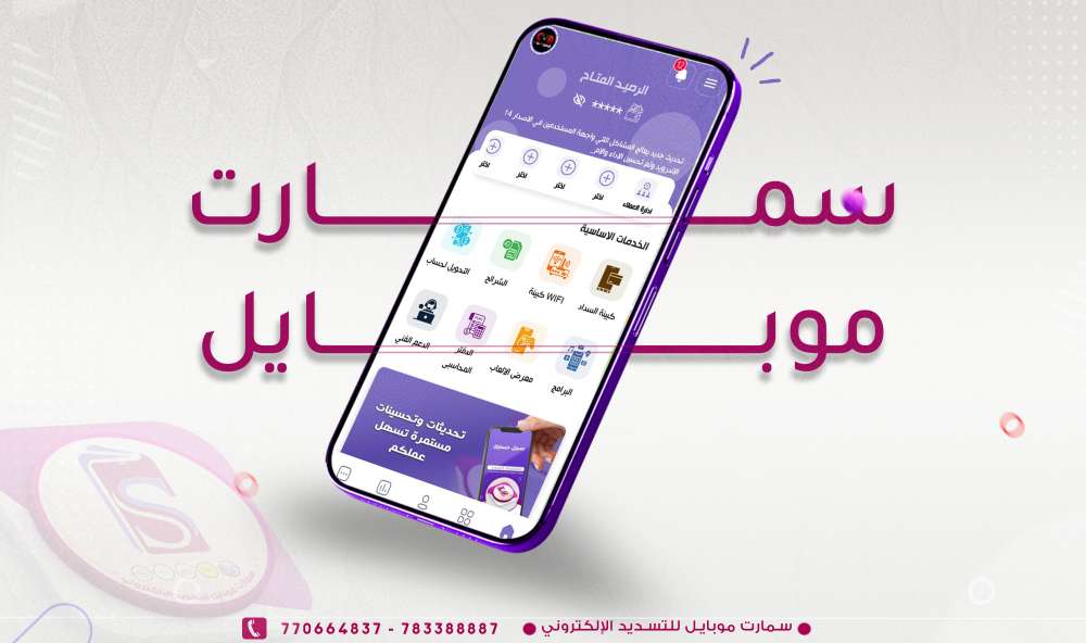 - تسديد جميع الشبكات اليمنية (يمن موبايل,يو,سبافون,واي,الهاتف الثابت,والانترنت الارضي,تسديد فواتير الماء والكهرباء)